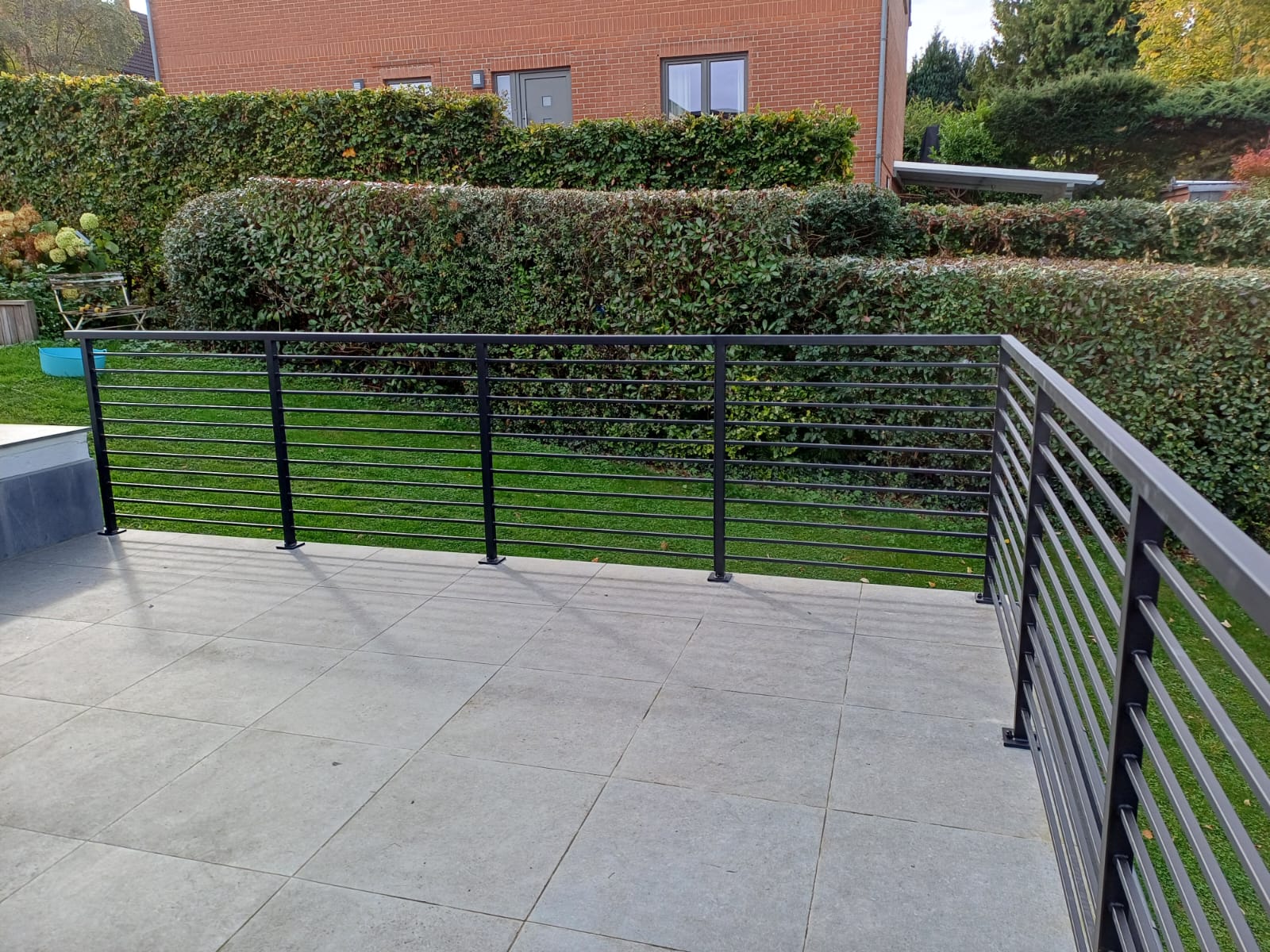 Garde-corps en acier thermolaqué sur mesure, au design moderne et épuré. Structure robuste, idéale pour terrasses et balcons contemporains. Finition durable et résistante aux intempéries.